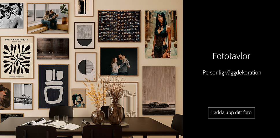 Har du ett foto eller ett grafiskt motiv som skulle passa som väggkonst i ditt hem? I så fall har Illux en mängd högkvalitativa lösningar för dig: Vi erbjuder förstorningar av ditt foto på canvasduk, glas, aluminiumplatta eller akustisktavla i de absolut bästa materialen. Oavsett om det är en bild på canvas eller någon av våra många andra alternativ så produceras allt i Danmark. Foto på canvasduk kan exempelvis tryckas i upp till 230x300 cm, och om det ska vara ännu större kan vi också trycka det som tapet indelat i banor. Vårt smarta ordersystem kontrollerar automatiskt kvaliteten på din fil så vi kan säkerställa att skärpan är optimal.