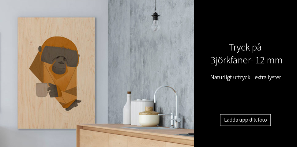 Trä i alla former är en tidlös favorit inom inredning. Ändå ser man sällan bilder på väggarna producerade på trä. Med björkfanér – 12 mm kan du därför ge ditt foto ett naturligt uttryck som sticker ut, men samtidigt passar perfekt in i den moderna inredningsstilen.