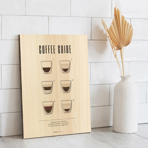 Björkfanérets ljusa yta och diskreta struktur tillför motivet värme och karaktär, utan att ta uppmärksamheten från själva bilden. Vi trycker med 6-färgs UV-print, vilket säkerställer ett skarpt resultat med klara, djupa färger.